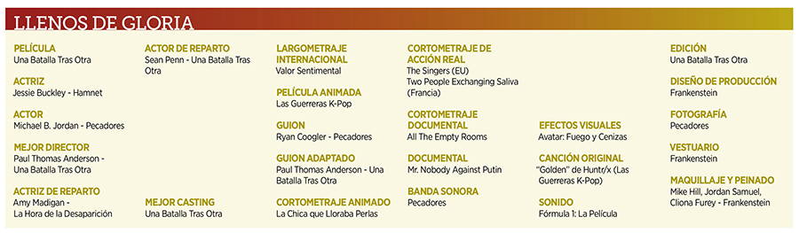 La película Una Batalla Tras Otra, dirigida por Paul Thomas Anderson, dominó la 98ª edición de los Premios Óscaral llevarse seis estatuillas: Mejor Película, Mejor Director, Guion Adaptado, Actor de Reparto para Sean Penn, además de Edición y Casting, categoría que se entregó por primera vez este año.