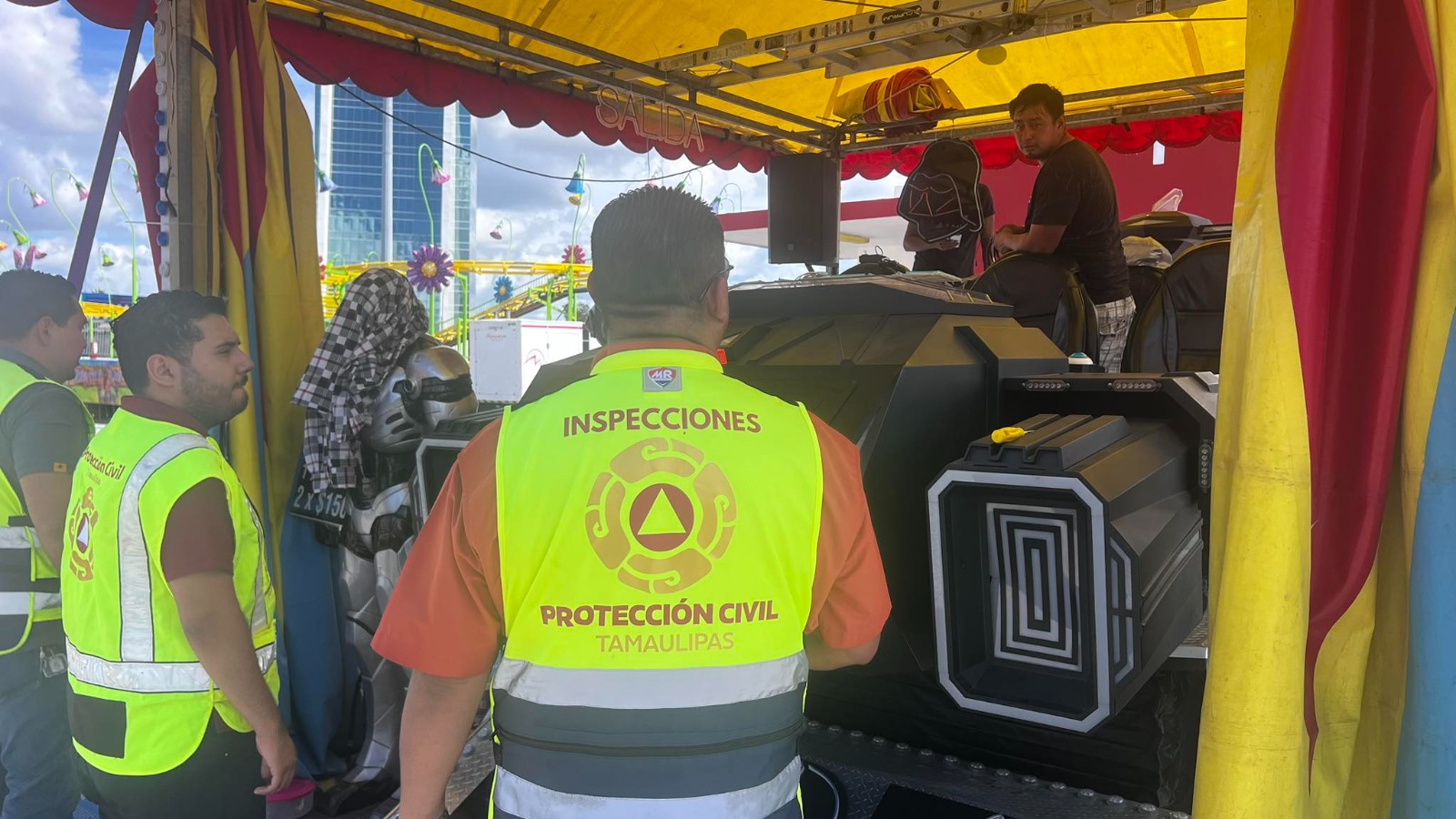 Durante el recorrido, los inspectores tanto del estado como del municipio revisaron estructuras, sistemas eléctricos y medidas de seguridad en cada atracción, además de colocar señalamientos preventivos y rutas de evacuación