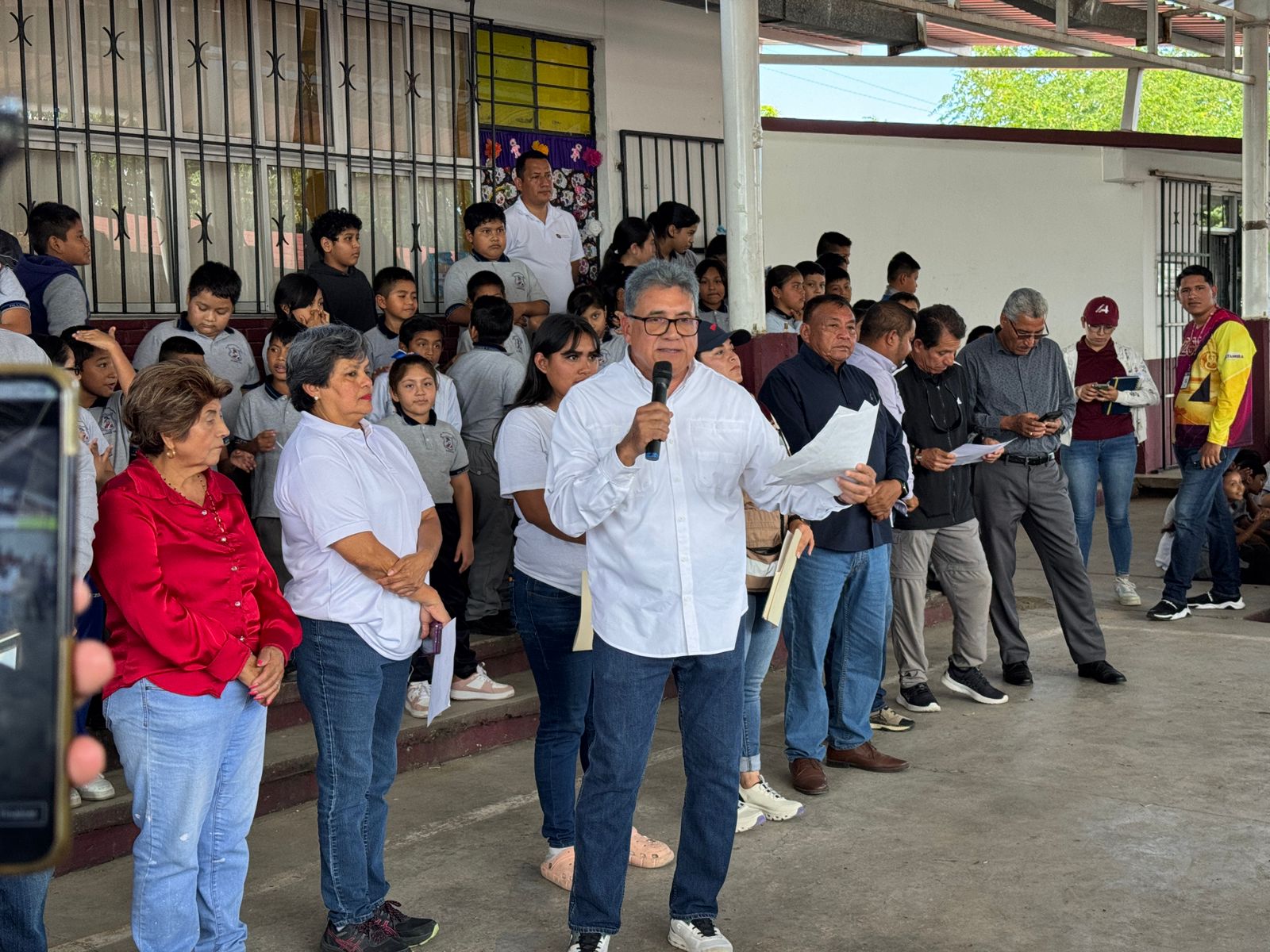 Entrega Armando Martínez mesabancos en la Escuela Primaria “Ignacio Allende”